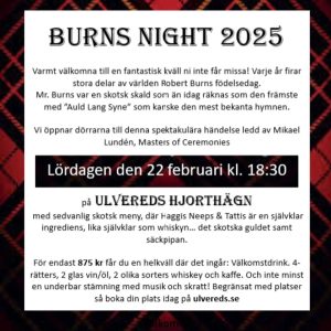För endast 875 kr får du en helkväll där det ingår: Välkomstdrink, 4 rätters, 2 glas vin/öl, 2 olika sorters whiskey och kaffe. Och inte minst en underbar stämning med musik & skratt! Begränsat med platser så boka din plats redan idag!